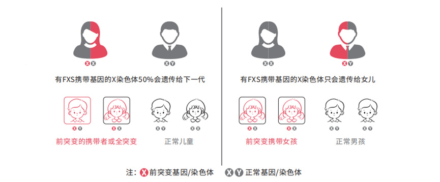 从遗传模式来看,要是爸爸是前突变携带者,携带脆性X综合征基因的X染色体会只传给女儿;要是妈妈是前突变携带者,这个X染色体会遗传给孩子。所以,家族里要是有相关病史,那后代的患病风险就不得不重视了。
