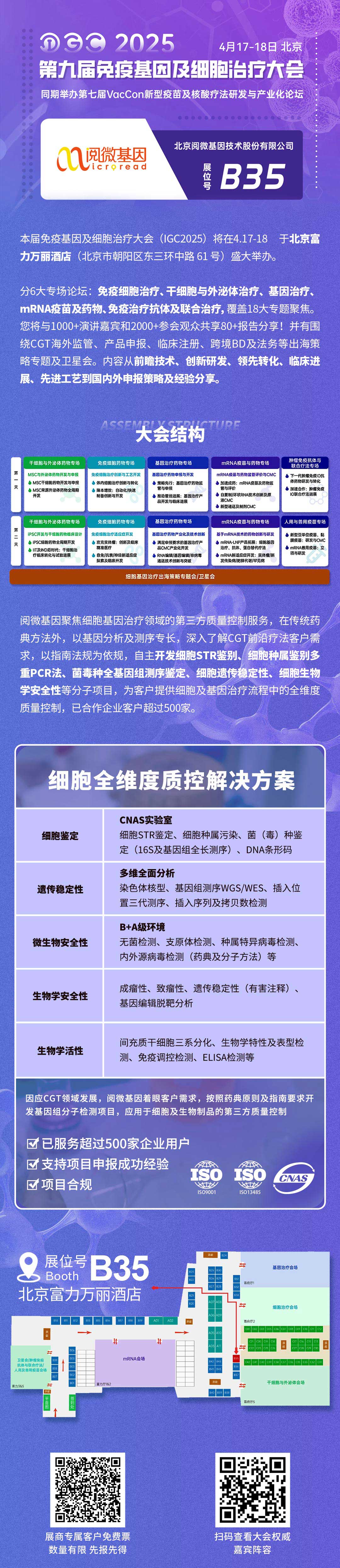 阅微基因 又双叒叕喊您参加北京IGC了!意向客户扫码免费报名,先到先得!
