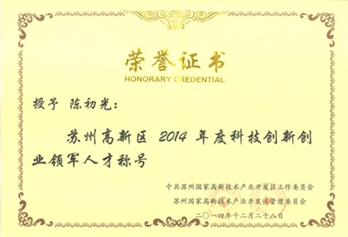 董事长陈初光喜获“苏州高新区领军人才”称号