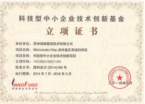 近期,阅微基因研发的Microreader 23sp身份鉴定系统,通过专家的评审,获得《科技型中小企业技术创新基金立项》。