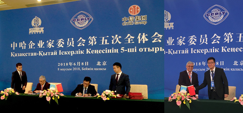 2018年6月8日下午于钓鱼台国宾馆举行的中哈企业家委员会第五次全体会议上,在哈萨克斯坦第一副总理马明的见证下,阅微基因与纳大签署合作备忘录。