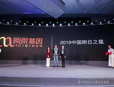 阅微基因凭借在基因技术领域的创新性技术优势和高成长性发展,从百余家企业中脱颖而出,入选“2019中国明日之星”。