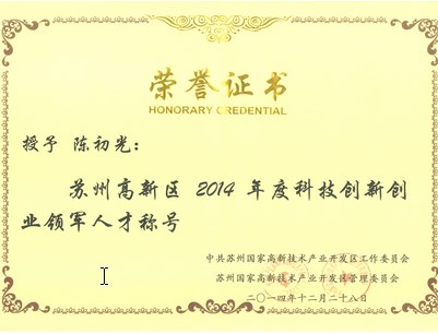 董事长陈初光喜获“苏州高新区领军人才”称号