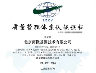 阅微基因通过ISO9001质量管理体系认证