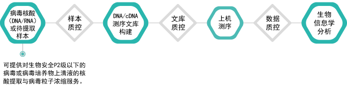 在病毒研究和相关生产当中,传统的Sanger测序方法只能够对已知序列病毒的特定序列进行扩增测序,而病毒基因组测序可基于高通量测序技术平台上对病毒全基因组进行测序,利用生物信息分析手段,得到病毒的全基因组序列,解析编码信息,并获得相应的变异信息。