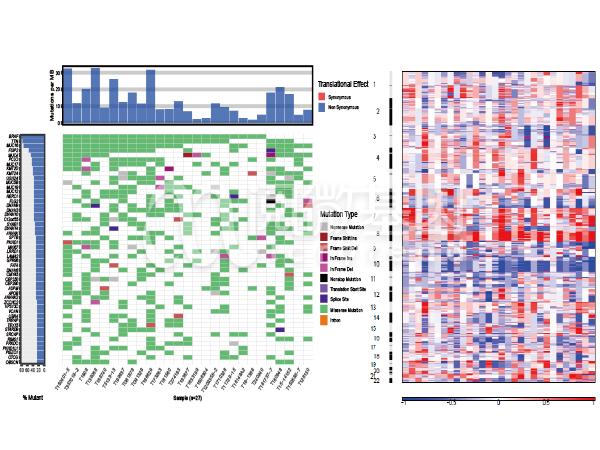 通过全外显子测序分析肿瘤突变,可有效覆盖SNV、InDel、gene fusion、CNV等多种类型变异,作为临床辅助诊断或试验筛选,可提示与治疗相关基因(化疗、靶向药)和癌症驱动基因的突变,且计算TMB;协同以 MSI 和 PD-L1 表达量分析检测可预测免疫疗效;合并HLA分型检测及变异多肽分析可预测新抗原。