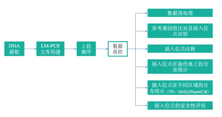 CAR-T细胞在体外改造过程中使用逆转录病毒或慢病毒载体将CAR序列插入患者T细胞基因组中。但由于病毒载体介导的基因序列插入具有随机性和不可预测性,从而可能影响插入位置周边基因的正常表达, 甚至激发原癌基因,引发不受控制的细胞增殖与克隆。Linker-Mediated (LM-PCR)方法基于高通量测序平台, 结合慢病毒LTR特异引物巢式PCR技术,可通过分析整合位点侧翼的 DNA序列,在全基因组层面上寻找病毒插入位置信息。
