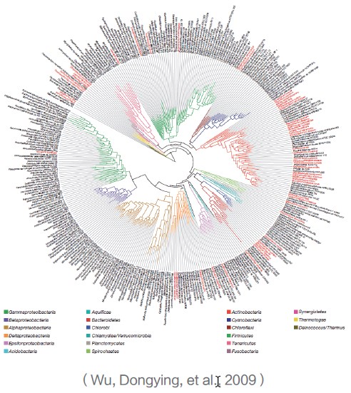 利用31个广泛使用的保守蛋白编码基因构建细菌域的最大似然系统发育树,揭示GEBA基因组的分类特征及与其他物种的亲缘关系。
