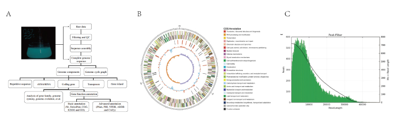 C. 读长长度分布图:三代测序最基本的优势特征就是独特的测序读长,因此足够长的读长是保证三代测序组装质量的基础。可以解决绝大部分重复序列,保证了细菌基因组完成图的质量。