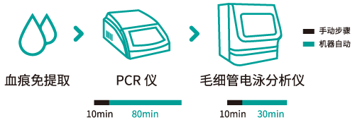 阅微基因掌握核心技术——快速多重基因检测系统:单管检测多重位点,手工操作时间 20 分钟,整个过程 2.5 小时,并支持血卡免提取直接扩增。